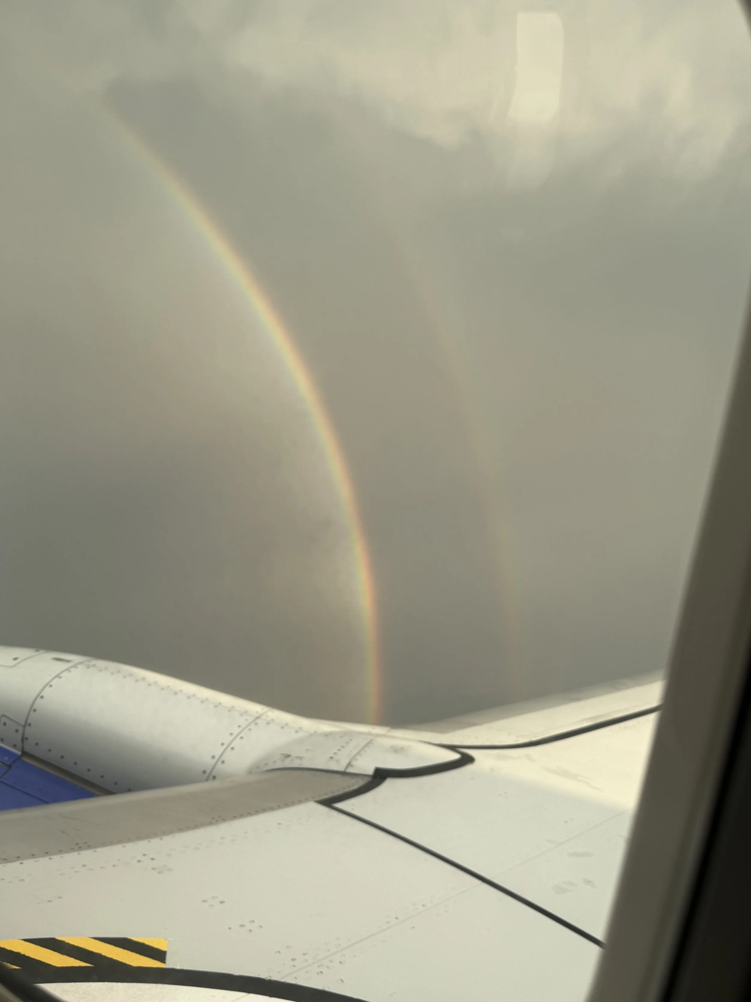 Finally, at least up until this point at 8:55 in Phoenix, shortly after we took off out of Indy, the plane flew by not one, but two rainbows—a double rainbow! I looked around and I don’t think anyone else saw the rainbows–I didn’t hear anyone point them out, and most of the windows were closed. I was one of the lucky few who got to see the beauty in the sky.