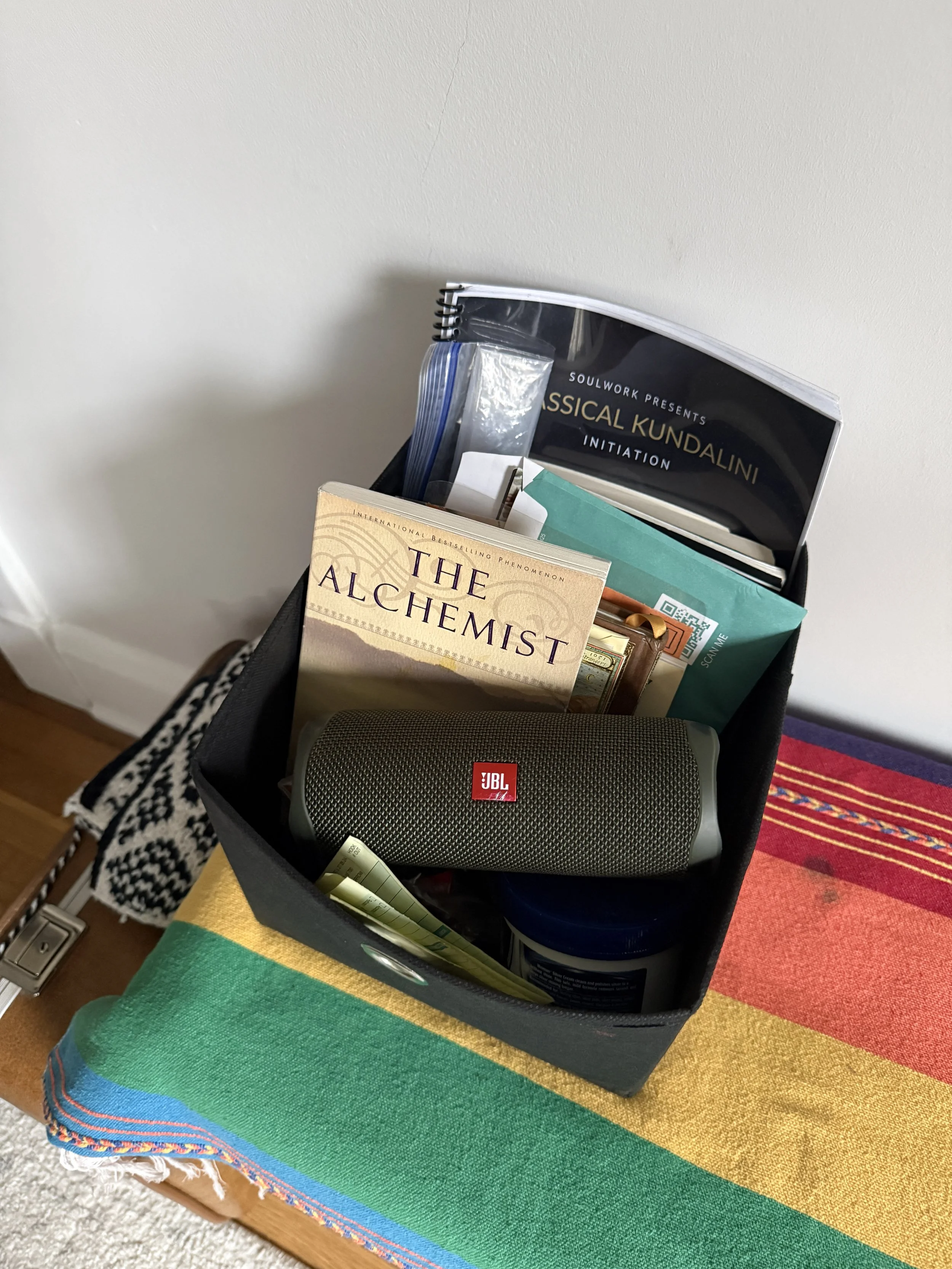 When I got to my friend’s house and dropped my bags off in the room I’d be staying in, I was greeted by a copy of The Alchemist peeking out of a basket.